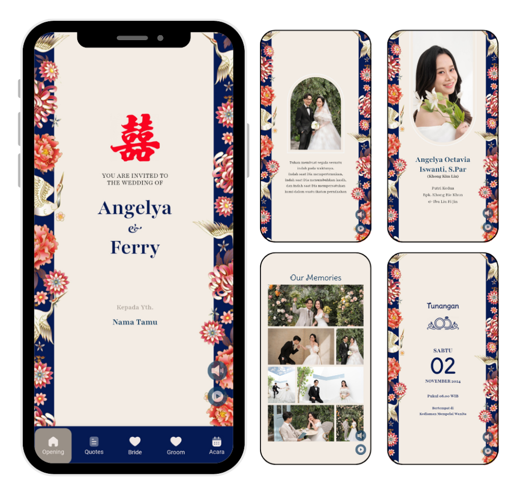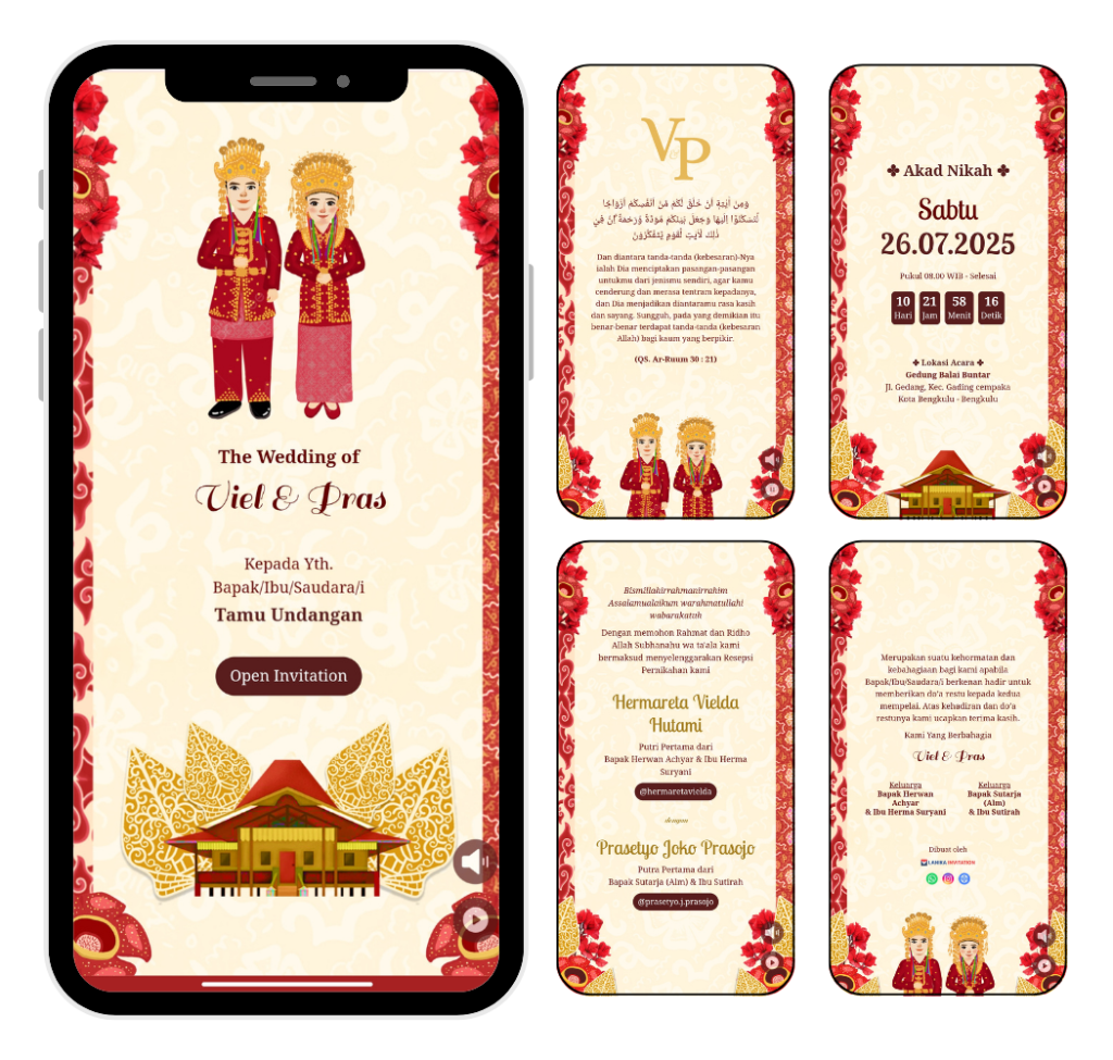 Di Lanika Invitation, kamu nggak harus pilih dari tema yang udah ada. Kamu bisa banget request desain undangan digital sesuai keinginan. Mulai dari warna, gaya, sampai elemen-elemen kecil yang menggambarkan konsep acara kamu. Dengan layanan Tema Custom, kamu bakal dapet desain undangan yang personal dan eksklusif.